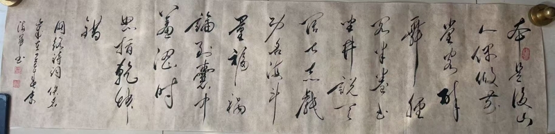 自幼酷爱书法,早年临习“二王”法帖,继而广泛涉猎《散氏盘》《张旭草书》《怀素自叙帖》等经典碑帖。风格上追求俊逸与厚重并蓄,兼具传统功底与个人气韵。